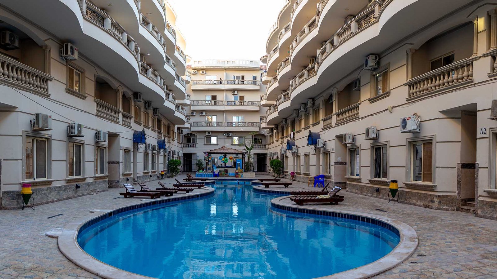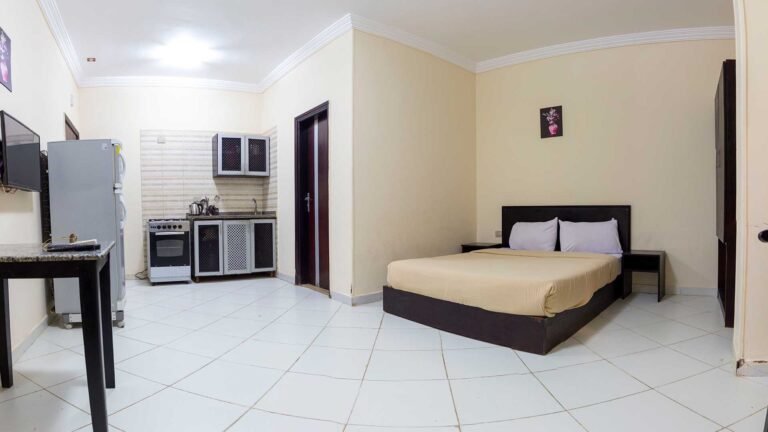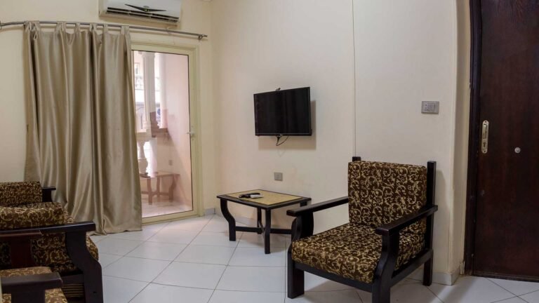 مساحة 45 متر (غرفة بسريرين + 1 كنبه سرير + مطبخ + حمام + بلكونة)