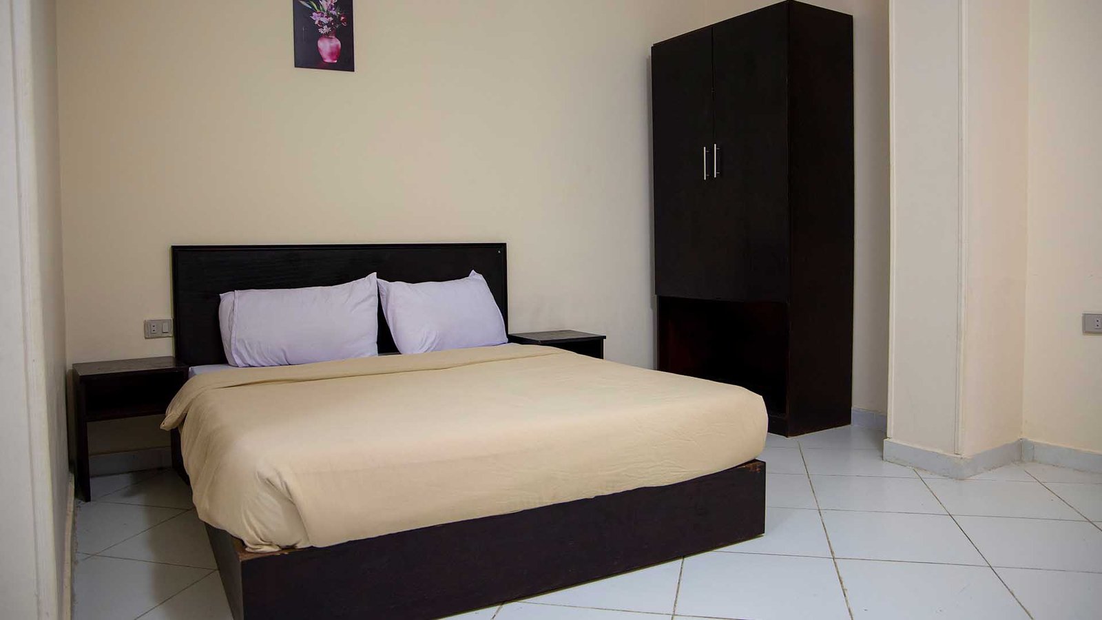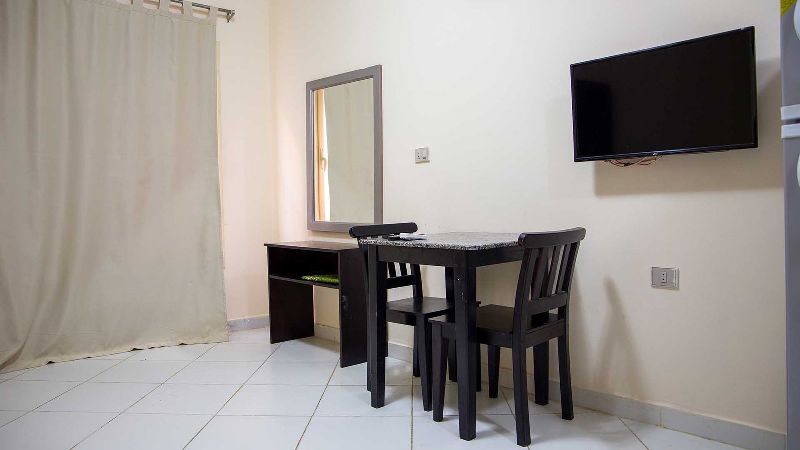 مساحة 65 متر (غرفة بسرير كبير + 1 كنبيه سرير + مطبخ + حمام + بلكونة)